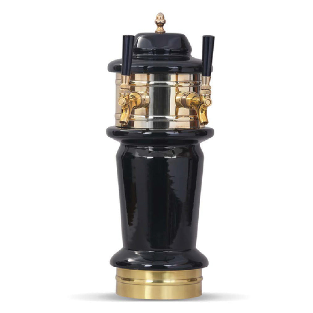 The Glastender MCT-4-PBR Monaco Draft Dispensing Tower is a high-quality beer dispensing solution featuring four stainless steel faucets constructed without handles. This tower boasts a ceramic construction paired with a striking brass finish, providing both durability and aesthetic appeal. Its design includes an insulated copper glycol loop and insulated restriction lines, ensuring efficient temperature regulation and optimal beer dispensing. The tower's mirror finish is complemented by a surface mount drain pan, which includes a removable perforated insert for easy maintenance. This product is made to order and is non-returnable, making it a tailored solution for discerning users. Ideal for bars, restaurants, and breweries, the Monaco Draft Dispensing Tower seamlessly integrates into various settings while emphasizing high performance and quality. Its innovative design and robust construction make it an invaluable asset in any setting where premium draft beer service is required.