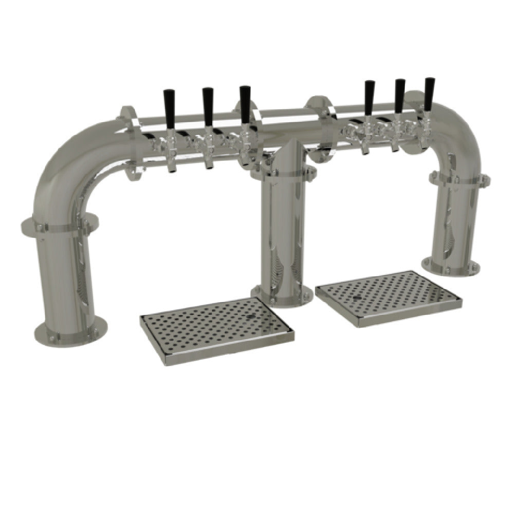 Glastender PB-6-MFR Pipe Bridge Draft Dispensing Tower Countertop (6) Stainless Steel Faucets (handles Not Included)