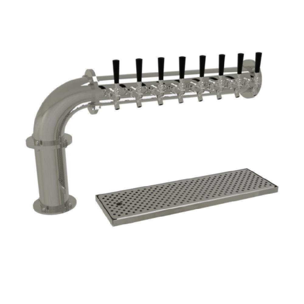 Glastender, Inc., PC-8-MF, Pipe Cantilever Draft Dispensing Tower, countertop, (8) stainless steel faucets (handles not included), air-cooled, (1) 4" column, surface mount drain pan with removable perforated insert, all stainless steel construction, mirror finish (NOTE: Made to order, not returnable)"