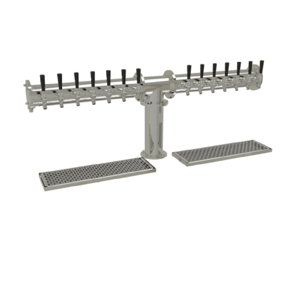 Glastender PT-14-MFR Pipe Tee Draft Dispensing Tower Countertop (14) Stainless Steel Faucets (handles Not Included)