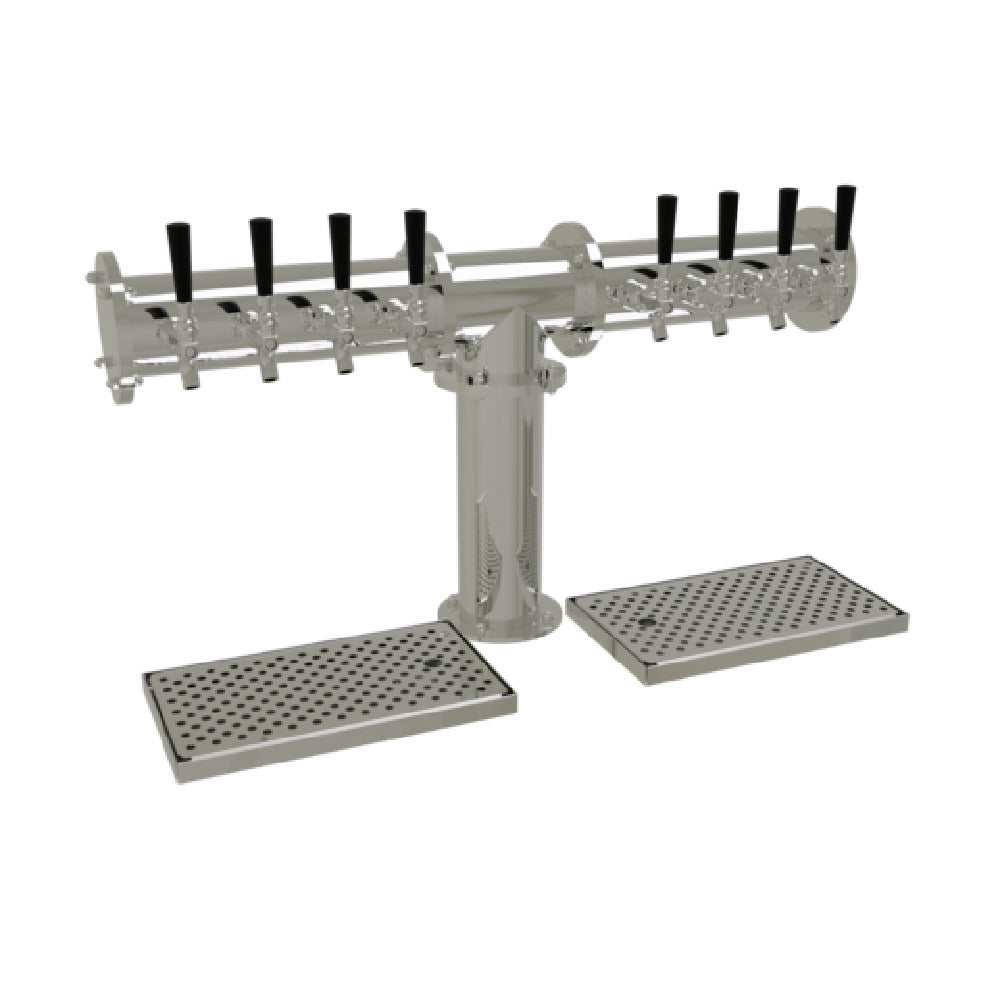 Glastender PT-8-MFR Pipe Tee Draft Dispensing Tower Countertop (8) Stainless Steel Faucets (handles Not Included)
