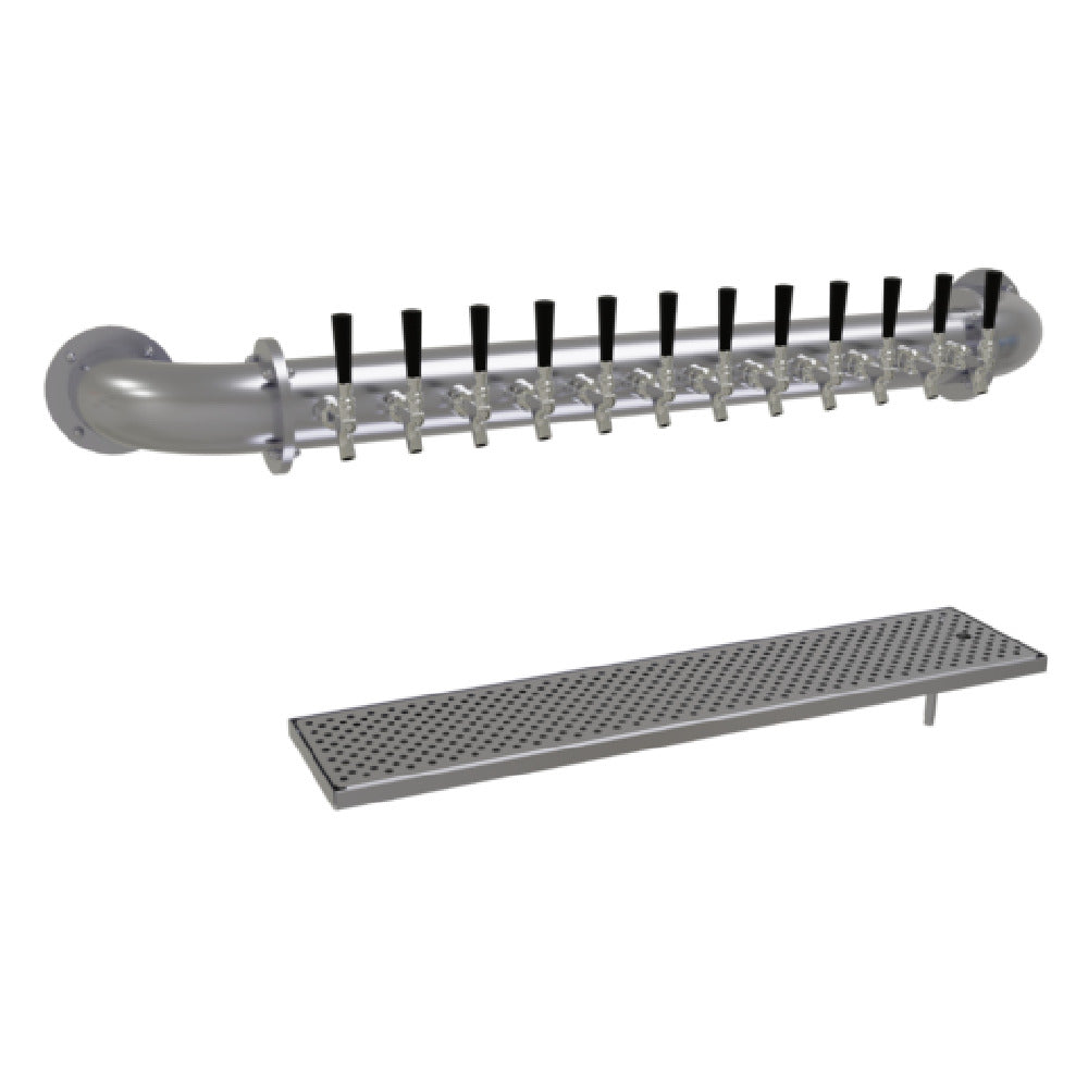 Glastender PW-12-SSR Pipe Wall Draft Dispensing Tower Wall Mount (12) Stainless Steel Faucets (handles Not Included)