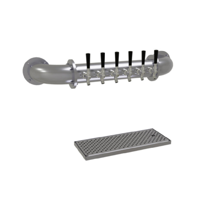 Glastender, Inc., PW-6-SS, Pipe Wall Draft Dispensing Tower, wall mount, (6) stainless steel faucets (handles not included), air-cooled, surface mount drain pan with removable perforated insert, all stainless steel construction, stainless steel finish (NOTE: Made to order, not returnable)"