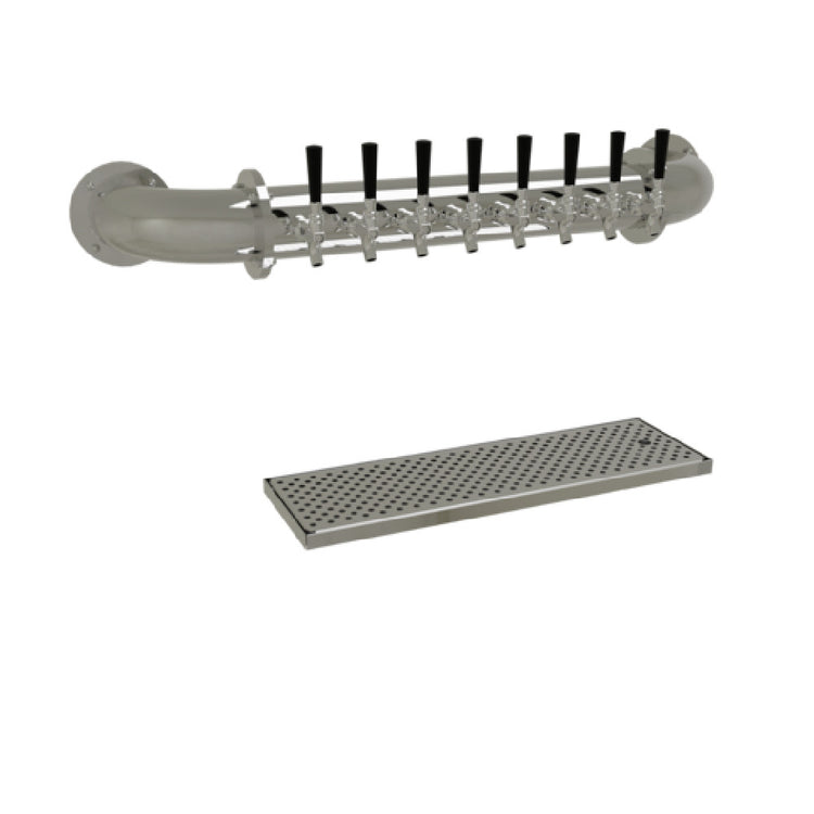 Glastender, Inc., PW-8-MF, Pipe Wall Draft Dispensing Tower, wall mount, (8) stainless steel faucets (handles not included), air-cooled, surface mount drain pan with removable perforated insert, all stainless steel construction, mirror finish (NOTE: Made to order, not returnable)"