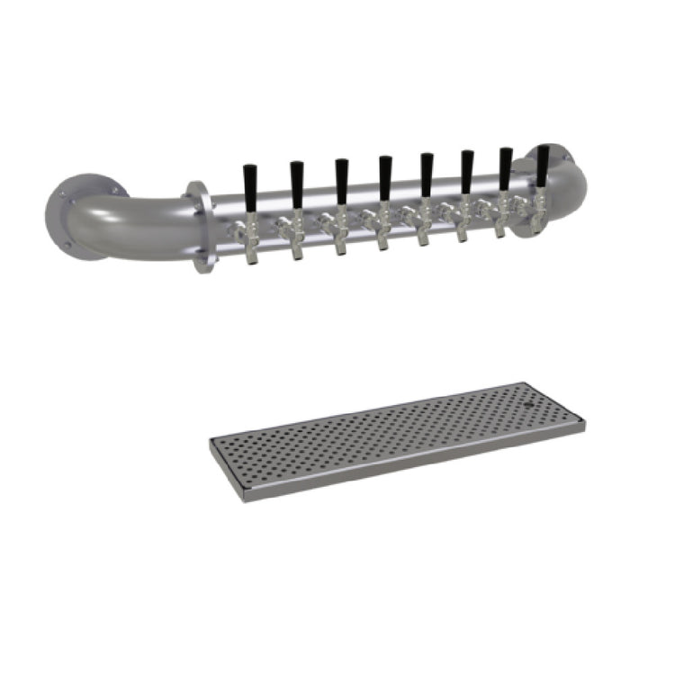Glastender PW-8-SSR Pipe Wall Draft Dispensing Tower Wall Mount (8) Stainless Steel Faucets (handles Not Included)