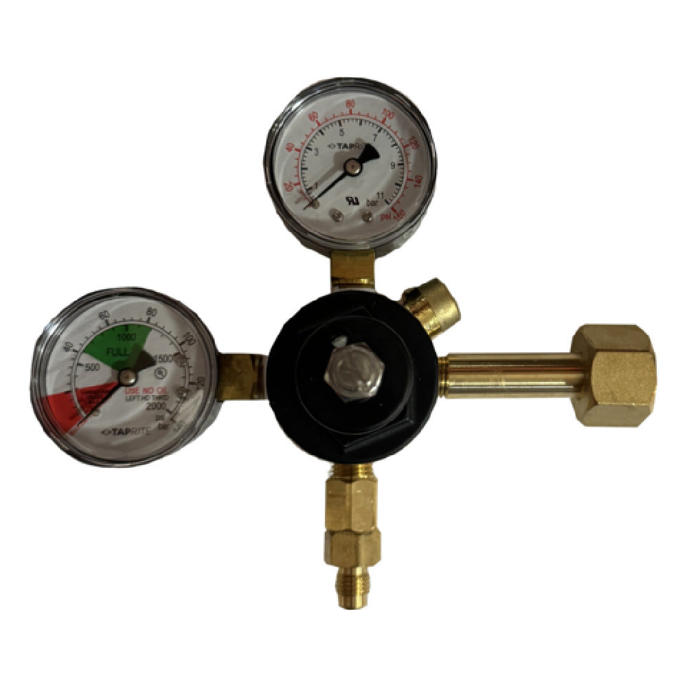 The Glastender RKH-TC Regulator Kit High Pressure Tank Mount is an expertly designed component perfect for numerous industrial applications that require precise CO2 regulation. This robust kit integrates a high-pressure tank mount system tailored for professional environments where efficiency and reliability are paramount. It features a double gauge system, providing users with an accurate and clear display of gas levels and pressure, ensuring smooth operation and optimal performance. Accompanying the regulator kit is a generous 50 feet of nylon-braided gas tubing, known for its durability and flexibility, which makes installation straightforward while allowing for versatile positioning within varied setups. This regulator kit's design is particularly beneficial for businesses requiring consistent CO2 supply, including breweries, restaurants, and laboratories, where maintaining correct gas pressure is crucial. The Glastender RKH-TC is an essential tool for ensuring high-performance standards in environments where precise gas control is necessary, positioning itself as a valuable asset for industries reliant on CO2 applications.