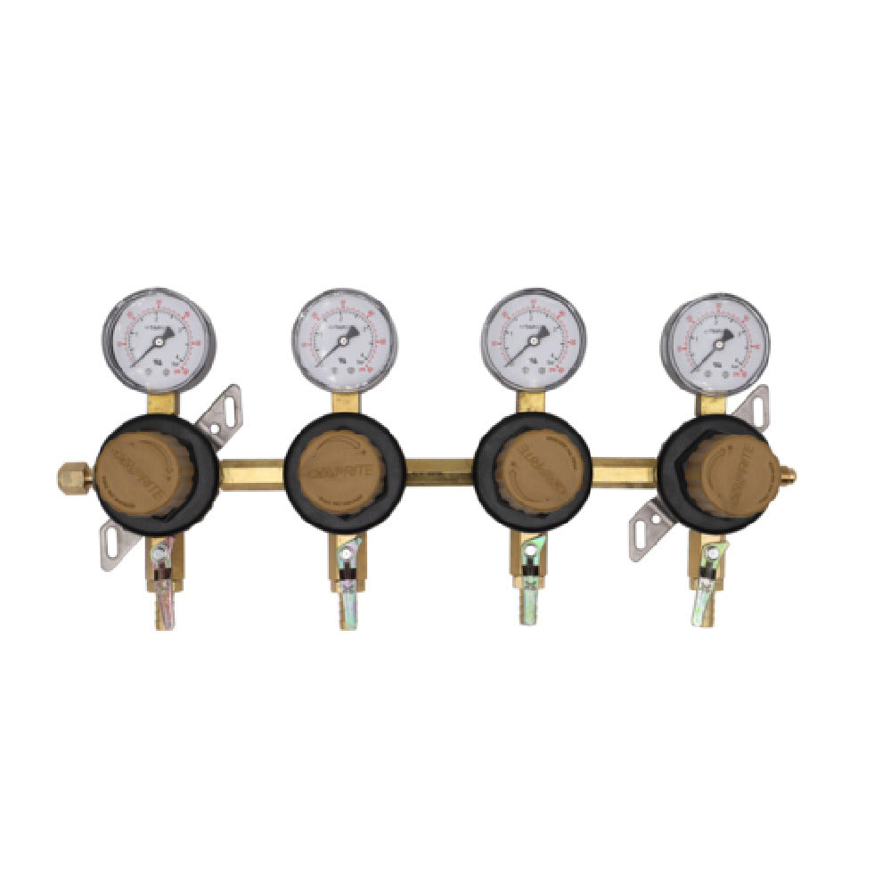 The Glastender RKL-W4 Regulator Kit Low Pressure Wall Mount is a specialized unit designed for precise and efficient gas management, suitable for both CO2 and Nitrogen applications. This kit includes four product channels, each equipped with 6 feet of red gas tubing, ensuring ample reach and flexibility in various installation scenarios. The low-pressure regulator ensures consistent and safe operation, making it ideal for environments where gas pressure needs to be carefully controlled. Its wall-mount design allows for space-saving installation, which is essential in busy commercial environments such as bars, restaurants, and beverage service areas. The Glastender RKL-W4 is engineered by Glastender, Inc., a name synonymous with quality and innovation in beverage equipment. This regulator kit is an excellent choice for businesses seeking reliability and performance in their gas supply systems, offering the flexibility to cater to different segment markets within the beverage industry. Whether you are serving beverages on tap or require precise gas delivery for carbonation and preservation, the Glastender RKL-W4 Regulator Kit provides a reliable solution that integrates seamlessly into existing setups.