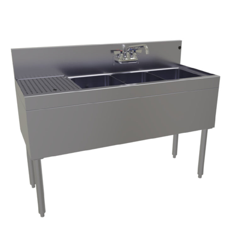 Glastender TSA-48R-S Underbar Sink Unit Three Compartment 48"W X 19"D