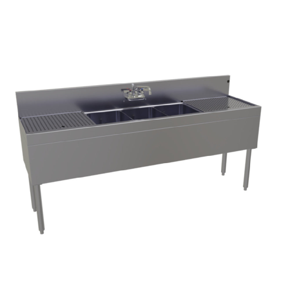 Glastender TSA-72-S Underbar Sink Unit Three Compartment 72"W X 19"D