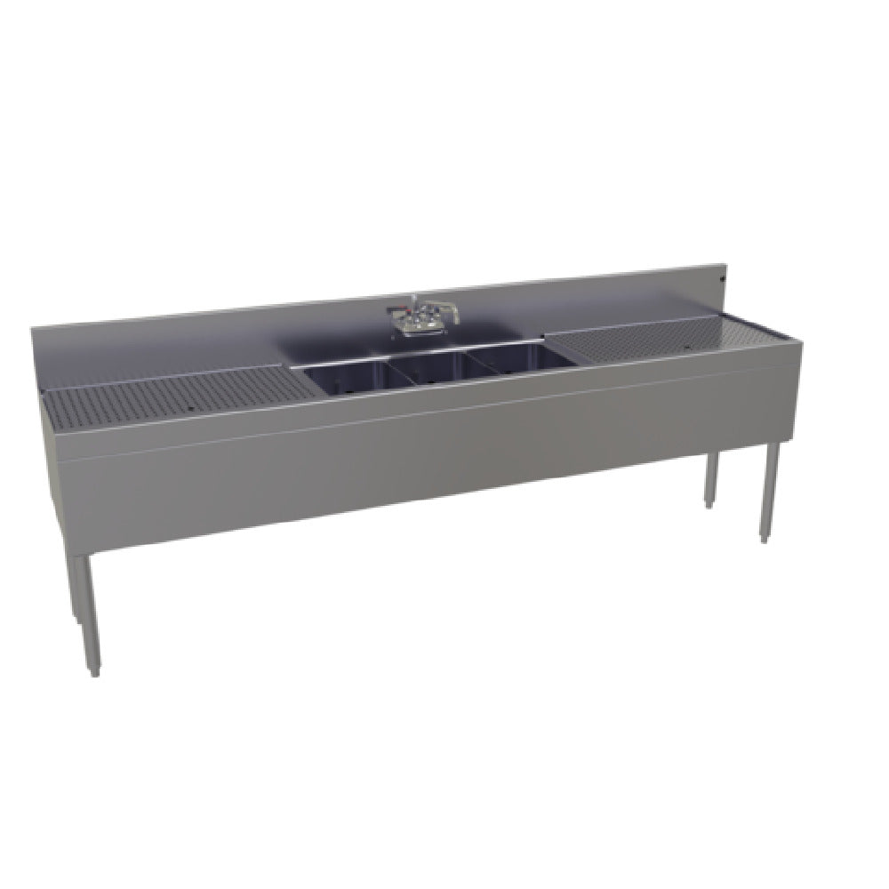 Glastender TSA-96-S Underbar Sink Unit Three Compartment 96"W X 19"D