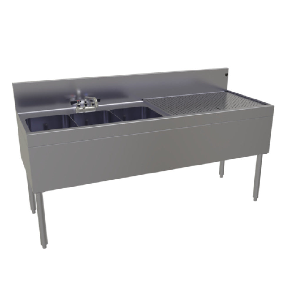 Glastender TSB-66L-S Underbar Sink Unit Three Compartment 66"W X 24"D