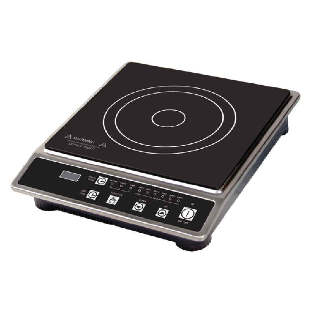 The Global Solutions By Nemco GS1681 Induction Range Countertop 10" Dia. Pan Maximum is a versatile appliance engineered for efficiency and precision in culinary operations. This portable induction range features a sleek glass cook-top complemented by intuitive touch pad controls, allowing for seamless operation. The unit is equipped with a 4-digit LED display that provides clear visibility of settings, enhancing user experience. It offers six power levels, catering to diverse cooking requirements, while its digital timer facilitates precise cooking durations. Safety is a priority with pan detection and an automatic safety shut-off mechanism. The unit operates with temperature settings ranging from 150°F to 450°F, accommodating various cooking techniques. Overheat protection and an error code alert display further ensure operational safety and reliability. Designed with non-slip feet, this induction range remains stable during use. Constructed with durable stainless steel, it operates on 120 volts, delivering 1800 watts with a 15 amp current, and uses a NEMA 5-15P plug, meeting ETL standards. This product is ideal for small commercial kitchens, catering services, or culinary demonstrations requiring a compact and efficient cooking solution.