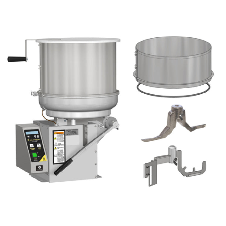 The Gold Medal 2182-00-210 Combo King Combination Unit is engineered for corn treat enthusiasts and professionals, boasting a 5-gallon capacity suitable for high-demand environments. This multifunctional unit excels in creating pralinator batches of approximately 4 to 4.5 pounds of finished product, alongside fudge batches reaching approximately 8 pounds per cycle. The left-hand dump design enhances operational efficiency, complemented by a Membrane Keypad Control with a 2-line digital display for precise adjustments. A cast aluminum kettle paired with a stainless steel drum ensures durability and consistent performance. With a power output of 3408 watts, it connects via an L14-20P Nema plug operating at 120/208 volts and 60 Hertz on a single-phase system. Certified by NSF and cULus, the Combo King meets stringent safety and quality standards, making it a reliable choice for diverse industry segments including confectioneries and food service establishments seeking to expand their product line with minimal equipment. This combination unit not only enhances production capacity but also ensures product quality, catering to businesses that demand versatility and efficiency in their operations.