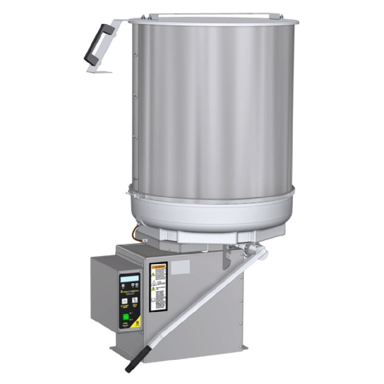 The Gold Medal 2630-00-210 Mark 20 Corn Treat Cooker/Mixer is a high-performance machine designed for efficiency in producing corn treats, boasting a substantial 20-gallon capacity. This model can produce 2-3 batches per hour, which makes it suitable for commercial environments where demand is high. It features a left-hand dump mechanism, facilitating ease of operation in various kitchen setups. The cooker/mixer is equipped with a membrane keypad control that includes a 2-line digital display, allowing for precise control and monitoring of the cooking process. Its cast aluminum kettle, coupled with a stainless steel drum, ensures durability and excellent heat conduction. With a power rating of 6594 watts and operating at 208 volts on a single-phase electrical supply, it provides robust performance for demanding use. The unit comes with a NEMA 6-50P plug, ensuring compatibility with standard commercial kitchen electrical setups. Certified by cULus and NSF, this corn treat cooker/mixer meets rigorous safety and sanitation standards, making it a reliable choice for businesses ranging from small-scale popcorn shops to large-scale confectionery production facilities. Its blend of capacity, control, and efficiency marks it as a top choice for professionals in the food industry.