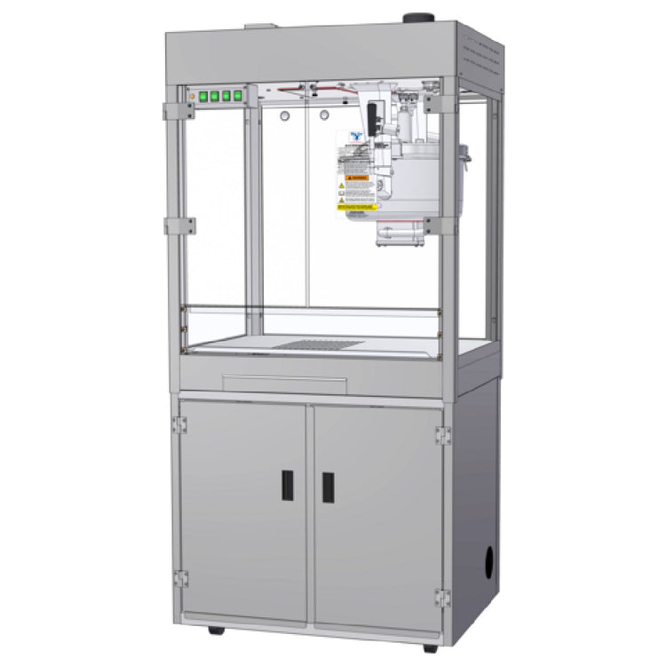 Gold Medal Products, 2671-00-801, Spartan 52 oz. Popcorn Popper with Base, electric, front counter, base cabinet with swivel casters, 52 oz. top hat kettle, electronic temperature control, LED backlit sign, LED cabinet lighting, heated corn deck, 3-stage filtration system, stainless steel cabinet and base construction, no oil capability, cETLus, ETL-Sanitation