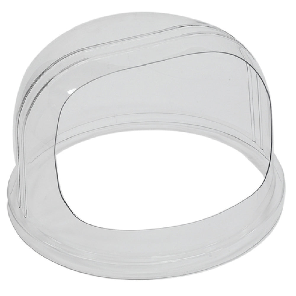 The Gold Medal 3943 Double Bubble Cotton Candy Machine Cover is a specialized accessory designed to enhance the functionality of cotton candy machines by controlling the spinning process of the candy floss. Constructed from high-quality food-grade PETG copolyester or polycarbonate, this cover ensures durability and safety, making it suitable for environments where food preparation standards are paramount. The bubble-style design provides clarity, allowing users to monitor the confectionery process without obstruction, and fits floss bowls with an outer diameter of 26 inches. This feature makes it a versatile choice across various segments of the confectionery industry, from small-scale vendors to large amusement parks, ensuring a consistent production process and maintaining the fluffiness of the cotton candy. The clear construction not only facilitates operational efficiency by offering visibility but also contributes to a clean and professional presentation. This product represents an essential tool for maintaining control over the cotton candy production process, safeguarding against debris intrusion, and optimizing the texture and quality of the cotton candy produced. Its robust construction and thoughtful design cater to the demands of professional cotton candy production, making it a valuable addition to any confectionery setup.