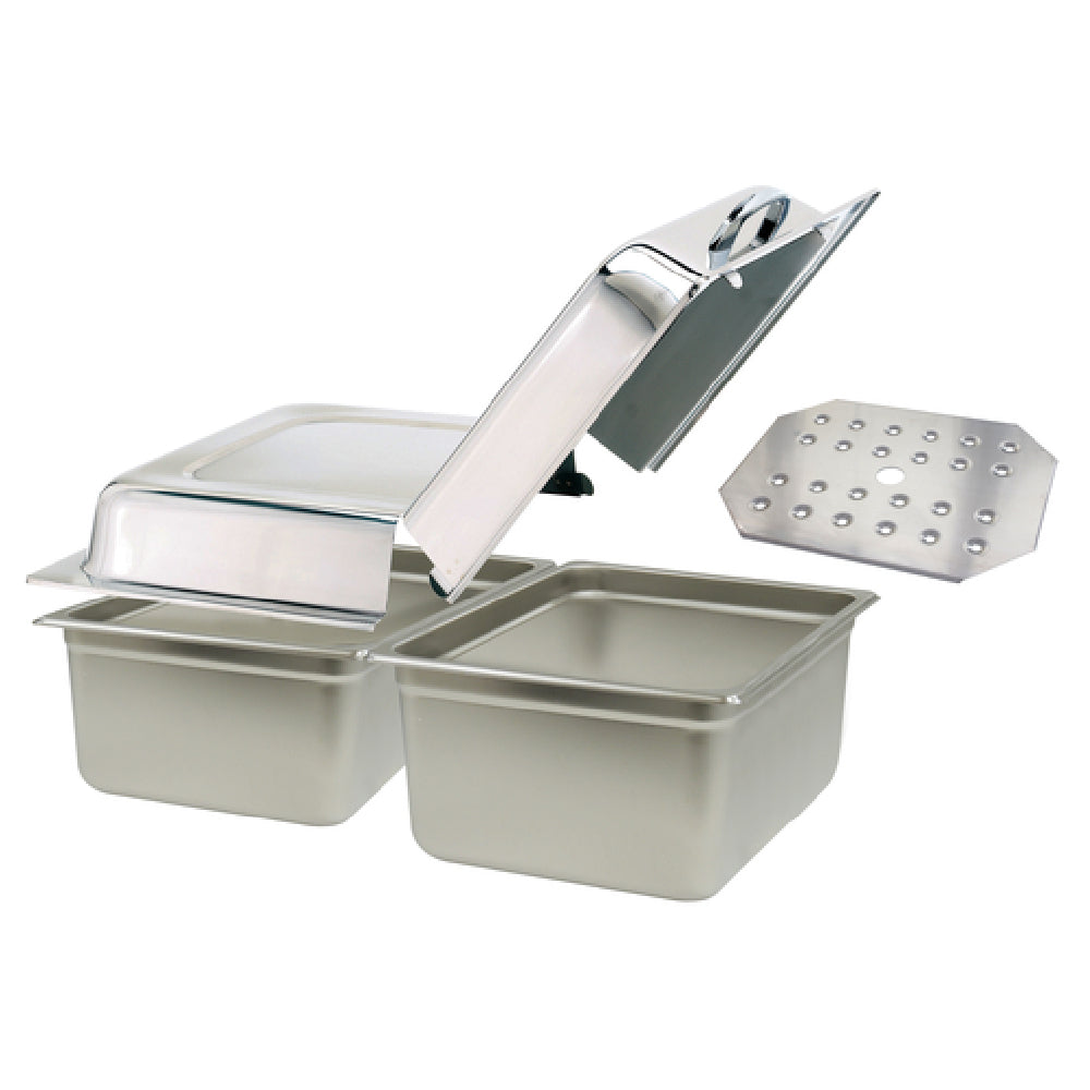 Gold Medal 8080-03 Steamer Pan & Lid Kit Includes: (2) 1/2 X 6 Pans With Full Hinged Dome Lids & (1) Perforated Insert For Buns