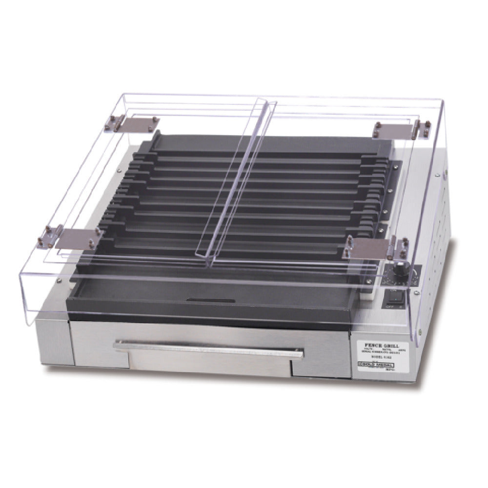 The Gold Medal 8169 Sneeze Guard is a meticulously designed accessory specifically crafted for integration with the 8162 Fence Grill. Its clear polycarbonate construction ensures both durability and transparency, ideal for maintaining visual engagement while providing essential hygiene protection. The sneeze guard features swing-out doors, facilitating easy access and operation during food service tasks. These doors are supported by stainless steel hinges, which enhance the product's robustness and longevity, ensuring smooth and reliable functionality over time. This sneeze guard is a strategic fit for various segment markets within the food service industry, including restaurants, concession stands, and event catering, where hygiene and food safety are paramount. Its clear polycarbonate material is not only resilient but also easy to clean, making it an efficient solution for maintaining cleanliness and preventing contamination. The design of the Gold Medal 8169 Sneeze Guard aims to uphold the highest standards of safety without compromising on the operational efficiency and aesthetic appeal of food service environments, thus making it a focal point for establishments prioritizing hygiene management in their service protocols. This product stands out by combining technical precision with user-friendly features, tailored to meet the diverse needs of modern food service operations.