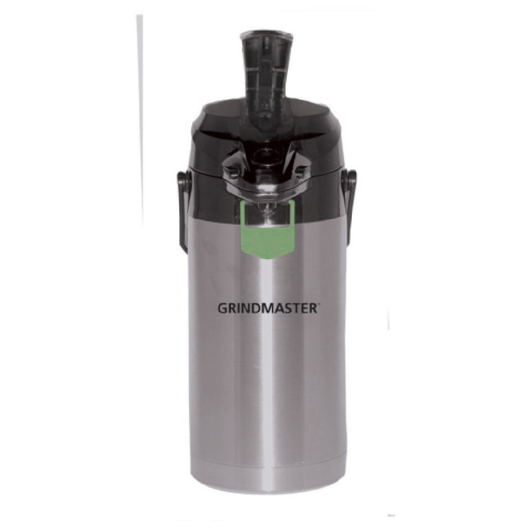 The Grindmaster Cecilware 2502-003 GRINDMASTER Beverage - (LV870014) Lever Airpot is an essential tool for professional beverage service, engineered with precision to meet the demands of various industry segments. This lever airpot features a substantial capacity of 2.5 liters, making it ideal for high-volume environments where efficiency and reliability are crucial. Its construction includes a stainless steel liner, ensuring durability and maintaining beverage temperature, while the stainless steel exterior with a black top offers a sleek and modern appearance suitable for upscale settings. The lever dispense mechanism is designed for ease of use, providing a smooth and controlled pour to accommodate fast-paced service needs. Additionally, the airpot comes with a flavor tag, allowing for quick identification of contents, enhancing operational efficiency in busy service areas. Certified by NSF, this product meets the highest standards of public health and safety, making it a reliable choice for establishments that prioritize quality and compliance. The Grindmaster Cecilware 2502-003 is versatile enough to be utilized in a variety of settings, from cafes and restaurants to corporate events and catering services, delivering exceptional performance and a dependable beverage solution.