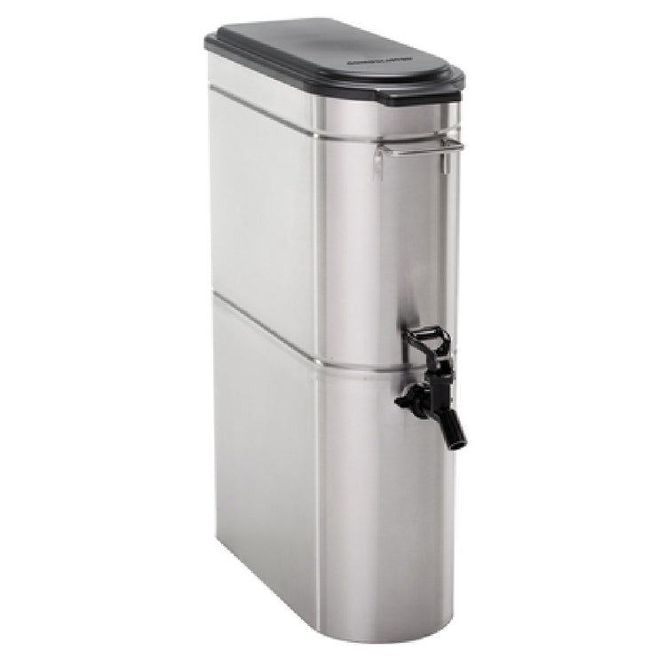 The Grindmaster Cecilware GTD3-TP GRINDMASTER Beverage (LV9R0169) Iced Tea Dispenser is a high-capacity solution designed for efficient beverage service, ideal for both commercial and institutional settings. With a substantial 3-gallon capacity, this iced tea dispenser caters to high-volume venues, ensuring a steady supply of refreshing beverages. The Tomlinson® front valve equipped with a pinch tube ensures smooth and controlled dispensing, enhancing user convenience. Constructed with passivated stainless steel for both its interior and exterior, the dispenser promises durability and resistance to corrosion, making it a long-lasting investment for any operation. The innovative laser welds eliminate the need for an internal liner, streamlining the design for ease of maintenance and cleaning. Built to meet the rigorous standards of the foodservice industry, the Grindmaster Cecilware iced tea dispenser includes handles for easy transport and handling, further adding to its practicality. Certified by NSF, this dispenser adheres to strict health and safety standards, making it a reliable choice for maintaining beverage quality. Its robust construction and thoughtful design make it a versatile asset in various settings, from bustling cafeterias to high-demand catering services, ensuring efficiency and longevity in beverage service operations.