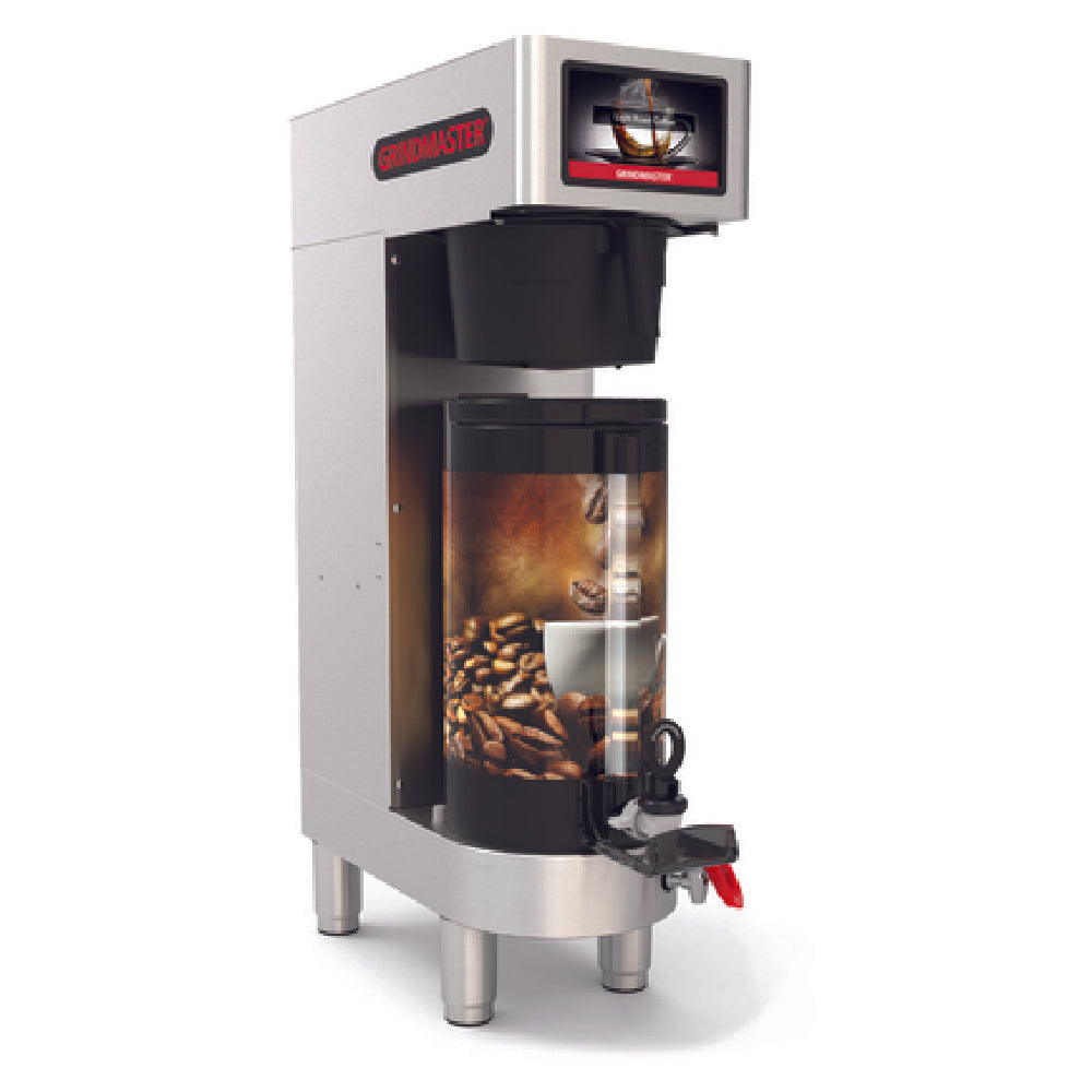 The Grindmaster Cecilware PBC-1V GRINDMASTER Beverage - (LV606060) PrecisionBrew™ Vacuum Shuttle® Coffee Brewer is a high-performance solution tailored for precise coffee brewing needs. This single coffee brewer is designed to accommodate a 1.5-gallon Shuttle® (V15, vacuum), making it an ideal choice for environments requiring large-scale coffee preparation. Featuring a user-friendly touchscreen with a digital interface, it allows for intuitive operation and control over the brewing process. The brewer is engineered with three distinct brew volume settings, providing flexibility in serving different customer demands. It holds the cULus and NSF certifications, which attests to its adherence to strict safety and quality standards. While the warmer shuttles and graphics are sold separately, the brewer’s advanced technology and robust construction make it a reliable asset for cafes, restaurants, and catering services looking to deliver high-quality coffee experiences. The Grindmaster Cecilware PBC-1V is positioned as a versatile brewer that meets the rigorous demands of commercial coffee production, offering reliable performance and consistent results for various market segments within the beverage industry.
