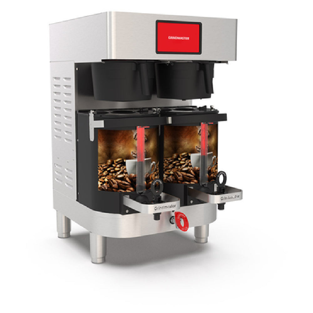 The Grindmaster Cecilware PBC-2A GRINDMASTER Beverage (LV606058) PrecisionBrew™ Air-Heated Shuttle® Coffee Brewer is a technologically advanced coffee brewing system designed for high-demand environments. This double brewer is engineered to support two 1.5-gallon Shuttle® (AS15, air-heated) units, ensuring consistent coffee quality and temperature maintenance. Equipped with a modern touchscreen and digital interface, this coffee brewer offers ease of use and precise control over brewing processes. Users can choose from three distinct brewing volumes, catering to varying customer needs and optimizing operational efficiency. The brewer is cULus and NSF certified, affirming its adherence to safety and sanitation standards, which is crucial for commercial use. While the warmer shuttles and graphics are available as separate accessories, the core unit's robust performance makes it a valuable asset in any food service setting, from bustling cafes to large-scale catering services. The PrecisionBrew™ technology incorporated into the design underscores its commitment to delivering high-quality coffee consistently, making it a preferred choice for professionals demanding reliability and excellence in their equipment.
