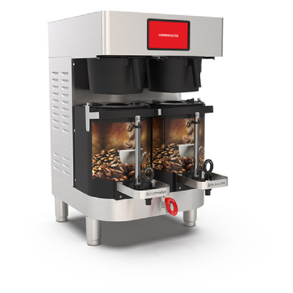 The Grindmaster Cecilware PBC-2W GRINDMASTER Beverage (LV606059) PrecisionBrew™ Warmer Shuttle® Coffee Brewer is an advanced double brewer designed for the demanding needs of the commercial beverage industry. This unit is tailored to accommodate a 1.5-gallon Shuttle® with an additional stand (WS15, warmer). It features a modern touchscreen with a digital interface, providing users with precise control over brewing parameters. With the capacity to handle three distinct brew volumes, this coffee brewer ensures flexibility and adaptability for various brewing requirements. The PBC-2W is both cULus and NSF certified, highlighting its adherence to strict safety and sanitation standards. Notably, while it includes advanced brewing technology, it is important to note that warmer shuttles and graphics are sold separately. This brewer is particularly well-suited for high-volume environments such as cafes, restaurants, and offices, where consistent quality and operational efficiency are critical. By integrating state-of-the-art technology with robust functionality, the Grindmaster Cecilware PBC-2W offers a reliable solution for establishments looking to deliver premium coffee experiences. Its precise engineering and thoughtful design make it an invaluable addition to any professional brewing setup.