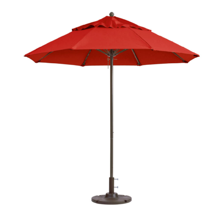 The Grosfillex 98366631 Windmaster Umbrella 7-1/2 Ft. Round Top is a versatile and durable shade solution, designed for various outdoor settings. This high-quality umbrella features a 7-1/2 foot round top, providing ample shade coverage for patios, pool areas, or restaurant outdoor seating. Its 1-1/2 inch diameter aluminum pole ensures stability and strength, ideal for environments exposed to wind and other elements. The umbrella is equipped with replaceable fiberglass ribs, which offer flexibility and resilience, enhancing longevity even in challenging weather conditions. The canopy is crafted from Recacril® fabric, known for its durability and resistance to fading, providing a lasting vibrant red color. Made in China, the Grosfillex Windmaster Umbrella combines functionality with aesthetics, making it a practical choice for both commercial and residential markets. It is particularly suited for businesses seeking reliable, long-lasting outdoor furniture options that can withstand daily use and diverse weather conditions. This umbrella is packed individually, ensuring it arrives in pristine condition, ready to enhance any outdoor space with its robust design and striking appearance.