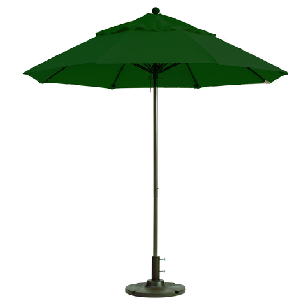 The Grosfillex 98382031 Windmaster Umbrella 7-1/2 Ft. Round Top is engineered for durability and practicality, making it a standout choice across various outdoor settings. Featuring a 7-1/2-foot round top, this umbrella provides ample shade, enhancing comfort in sunny environments. The umbrella's 1-1/2" diameter aluminum pole ensures sturdy support and resilience against wear, while its replaceable fiberglass ribs offer flexibility and longevity, crucial for resisting wind damage. Crafted with Recacril® fabric in a rich forest green color, it combines aesthetic appeal with functionality, as the fabric is known for its durability and resistance to fading. Made in China, the Grosfillex Windmaster Umbrella is packed individually, ensuring it arrives in pristine condition. This product is particularly beneficial for hospitality venues such as cafes and restaurants, where outdoor dining is a key feature, as well as for residential consumers seeking reliable patio protection. Its high-quality materials and construction cater to markets that prioritize longevity and aesthetic appeal in outdoor furnishings. The Grosfillex 98382031 Windmaster Umbrella is an exemplary blend of technical precision and design, promising to enhance any outdoor setting with its robust structure and classic style.