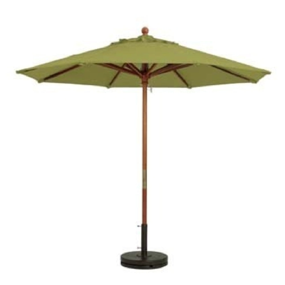 The Grosfillex 98914931 Market Umbrella 9 Ft Round Top is a highly versatile outdoor accessory designed for various market settings. Featuring a 9-foot round top, this umbrella provides ample shade coverage, making it perfect for outdoor dining, cafes, and poolside areas. The umbrella is supported by a sturdy 1-1/2 inch diameter wooden pole, ensuring durability and stability in different weather conditions. Crafted from Outdura fabric in a vibrant pesto color, it offers excellent resistance to fading, water, and mildew, making it an ideal choice for long-term outdoor use. This product is proudly made in the USA, highlighting a commitment to quality and craftsmanship. As a discontinued item with limited stock available, it presents a unique opportunity for businesses or individuals seeking a distinctive and reliable shading solution. The Grosfillex 98914931 combines functional design with aesthetic appeal, catering to different segment markets such as hospitality venues, residential patios, and commercial outdoor spaces. Its robust construction and premium materials make it a valuable addition for those looking to enhance their outdoor environments with a touch of style and practicality.