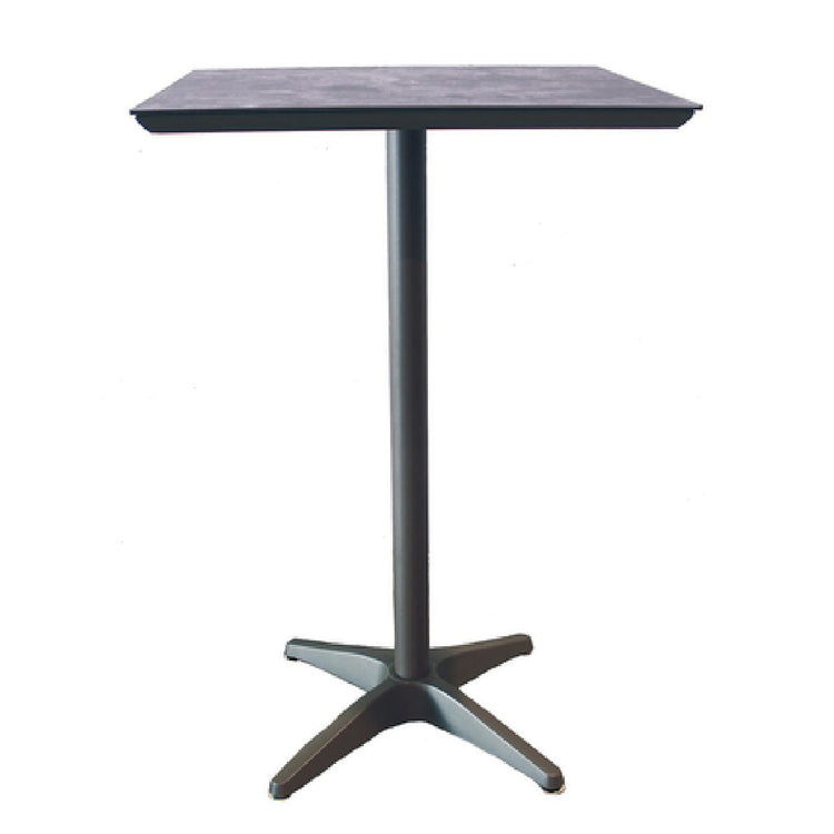 The Grosfillex U3402288 Sunset Outdoor Table is a meticulously designed bar-height piece, measuring 28 inches by 28 inches with a height of 42 inches. This square table showcases a high-pressure laminate top, providing durability and resistance to wear and tear, making it suitable for various outdoor settings. The volcanic black aluminum base, finished with a satin touch, not only enhances its aesthetic appeal but also contributes to its robustness. Equipped with leg levelers and nylon footpads, this table ensures stability and protection for different outdoor surfaces. Its composition includes rust and UV resistance, extending its lifespan and maintaining its pristine condition under diverse weather conditions. Crafted in France, this table reflects impeccable European craftsmanship. The granite finish adds a touch of sophistication, making it a versatile option for upscale patio bars, restaurants, or residential outdoor spaces seeking a blend of style and durability. Packed individually, the Grosfillex U3402288 is an ideal choice for those prioritizing quality and longevity in their outdoor furnishings. Whether used in commercial or residential environments, this table stands out for its functional design and the promise of maintaining its form and function in outdoor applications.