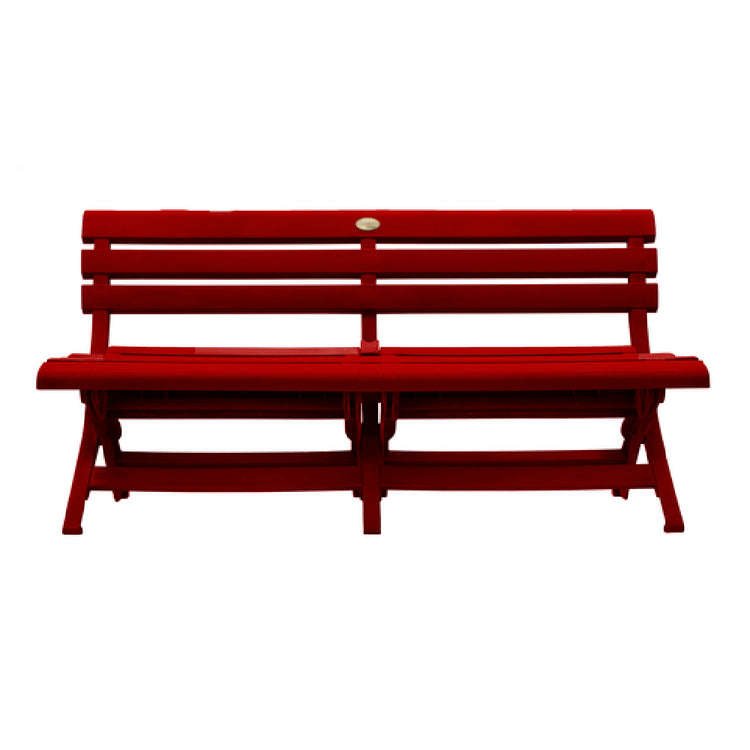 The Grosfillex US449748 Westport Folding Bench is a versatile seating solution measuring 58-3/4"W x 22" x 16"H, with a back seat height of 30". This bench is designed to accommodate up to three adults, supporting a weight capacity of over 900 lbs. Constructed from a barn red mineral polymer composite, it features a wood-like finish that combines aesthetic appeal with durability. This product is ASTM rated, ensuring it meets key safety and quality standards. The folding design of the bench enhances its utility for various settings, providing space-saving storage and convenient portability. Proudly made in the USA, the Grosfillex Westport Folding Bench is an ideal choice for both residential and commercial environments, including parks, gardens, and waiting areas. Its blend of robust construction, elegant design, and practical functionality caters to diverse market segments, offering a reliable seating option that is both stylish and resilient.