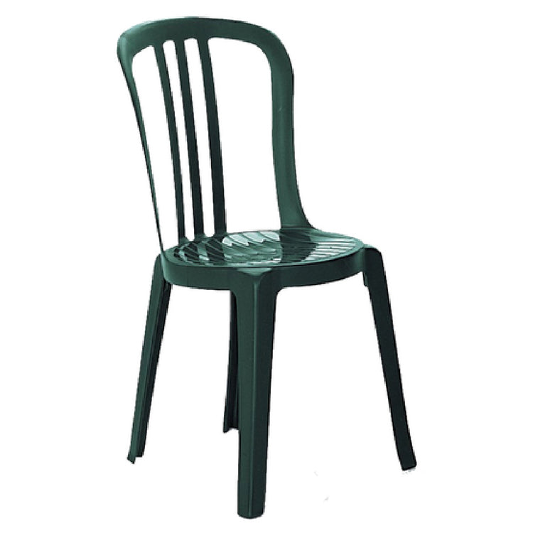 The Grosfillex US495078 Miami Bistro Stacking Side Chair with a slat back is specifically designed for outdoor use, making it a staple for various market segments seeking durable and stylish outdoor seating solutions. Manufactured in the USA, this chair is constructed from UV resistant resin, which ensures longevity and color retention even under prolonged sun exposure. The chair comes in an inviting amazon green color, adding a vibrant touch to any outdoor setting. Its stacking capability allows for efficient storage, making it an ideal choice for commercial venues such as cafes, restaurants, and event spaces that require flexibility and ease of storage. Each case contains four chairs, providing a convenient package for bulk purchasing. The Grosfillex Miami Bistro Chair combines aesthetic appeal with practical functionality, catering to the demands of hospitality and commercial outdoor environments where durability and ease of use are paramount.