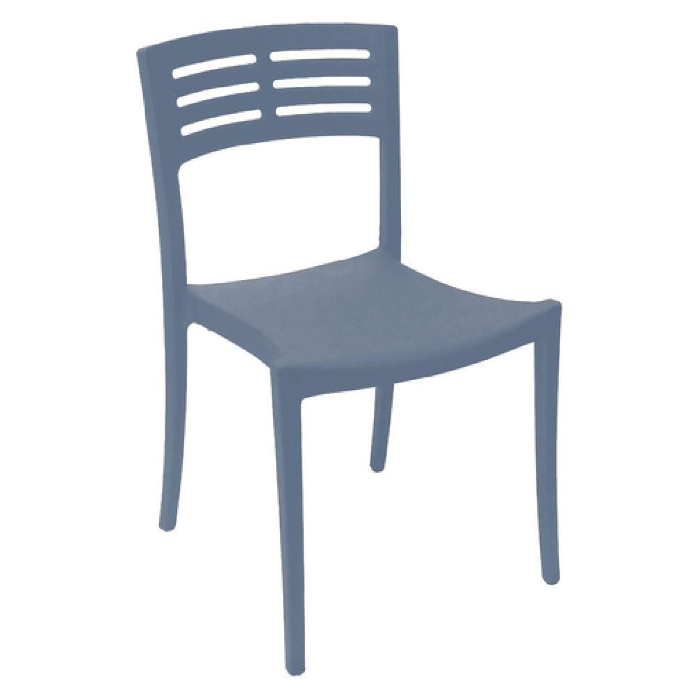 The Grosfillex US637680 Vogue Stacking Side Chair is a versatile seating solution designed for both indoor and outdoor use, ensuring adaptability across various environments. Made in the USA, this chair features a contoured design, providing ergonomic comfort to users. The slotted resin back and resin seat, combined with a sturdy resin frame, make the chair lightweight yet durable, offering longevity even with frequent use. The UV-resistant properties of the materials ensure that the denim blue color remains vibrant over time, even when exposed to sunlight. This chair is not only practical but also environmentally conscious, as it is recyclable. Each chair is priced individually, but they are conveniently packed with 16 chairs per case, catering to commercial or large-scale needs efficiently. The Grosfillex US637680 is an excellent choice for hospitality, event planning, or any commercial setting where stylish, stackable, and resilient seating is required. This product's construction and design harmoniously blend functionality with aesthetic appeal, making it a unique asset for various market segments in the industry.