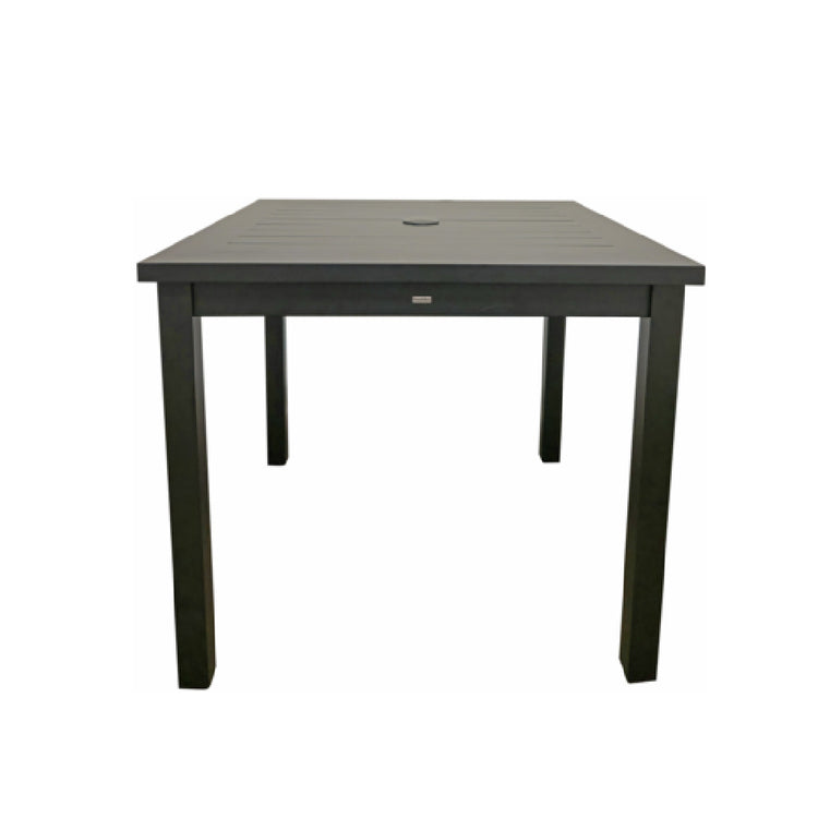 The Grosfillex US928288 Sigma Complete Outdoor Table is a versatile and well-constructed square table, measuring 34 inches by 34 inches with a height of 29-1/3 inches. This slatted aluminum table is crafted to withstand outdoor conditions, making it ideal for various segments within the hospitality and leisure industry. Featuring four sturdy corner legs equipped with adjustable levelers, this table ensures stability on uneven surfaces, providing reliability in diverse environments such as patios, cafes, and outdoor dining areas. The inclusion of an umbrella hole with a plug adds functionality, allowing users to easily incorporate shade options. Its UV-resistant properties and textured finish in Volcanic Black not only contribute to its durability but also enhance its aesthetic appeal. Designed to be shipped complete, this table simplifies the purchasing and assembly process, catering to the needs of businesses looking for quick and efficient outdoor furniture solutions. Manufactured in China, each unit is packed individually, adding to its convenience for bulk orders. The Grosfillex US928288 Sigma Complete Outdoor Table is an excellent choice for establishments seeking a blend of durability, practicality, and design in their outdoor furniture selections.