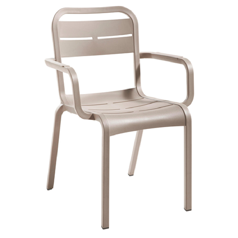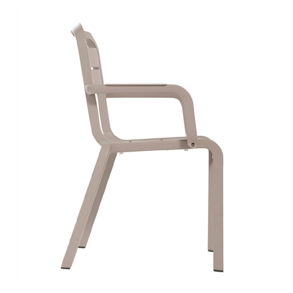 The Grosfillex UT115181 Cannes Stacking Armchair is a versatile seating solution designed for both indoor and outdoor use, offering a blend of durability and comfort that appeals to diverse market segments. This chair features a contoured design, providing ergonomic support to enhance user comfort. Its structure is crafted from high-quality resin, including a slotted resin back and a resin seat and frame, ensuring robust durability and resistance to environmental wear. The UV-resistant material helps maintain the chair's French taupe color and integrity under prolonged exposure to sunlight, making it ideal for outdoor settings. Its recyclable composition underscores an environmentally conscious design, appealing to eco-friendly consumers and businesses. Tested and rated according to ASTM standards, the Grosfillex UT115181 meets rigorous safety and performance criteria, ensuring reliability in various commercial and residential environments. Manufactured in the USA, this chair is packed conveniently with 16 units per case, making it a practical choice for bulk purchases by hospitality venues, event coordinators, or large residential spaces. Its stackable feature optimizes storage efficiency, allowing for easy organization and transport, further enhancing its value proposition for user convenience and space management.