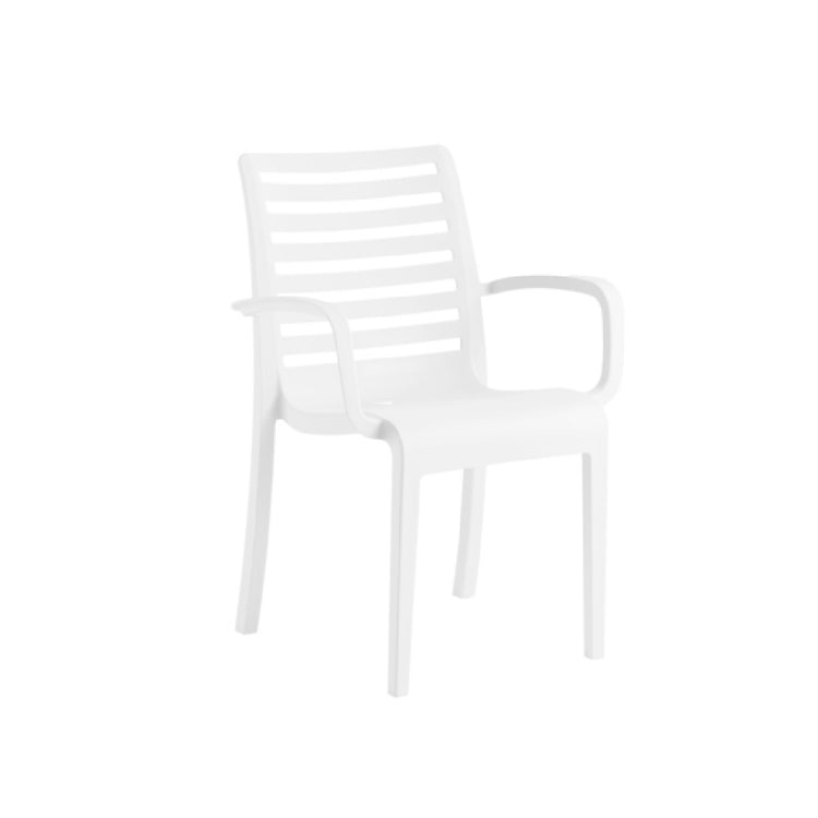 Grosfillex, UT945004, Astoria Stacking Armchair, 23.6"W x 23.4"D x 34.7"H, technopolymer with Air Molding Technology, resists saline air, UV and weather resistant, curves on seat and backrest, stackable and lightweight, outdoor use, polypropylene, white, Made in USA (priced per each, 16 per case) (Packed By: 16 Each Per Case)