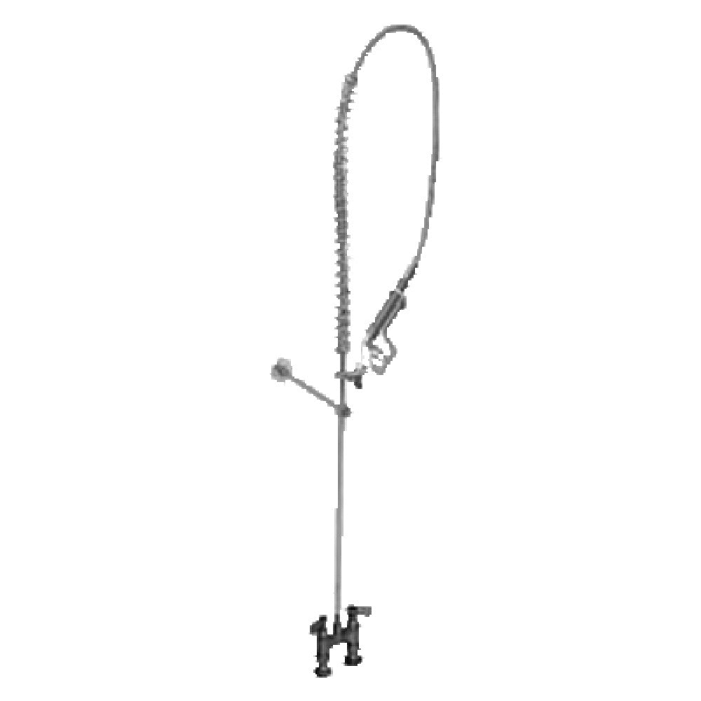 GSW USA, AA-984G, Pre-Rinse Unit, heavy duty, 4" deck mount, 45"H, universal 1/4" NPT or 1/2" NPS male inlets, integral spring check valves, 12" wall bracket attached, heavy duty brass construction, polished chrome finish, (901040-B), lead free