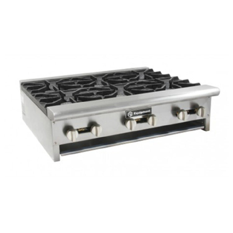 GSW USA, AEHP-36NG, Hotplate, natural gas, countertop, 36"W x 30"D x 10"H, (6) burners, (6) manual controls, stainless steel, 192,000 BTU (32,000 per burner), ETL