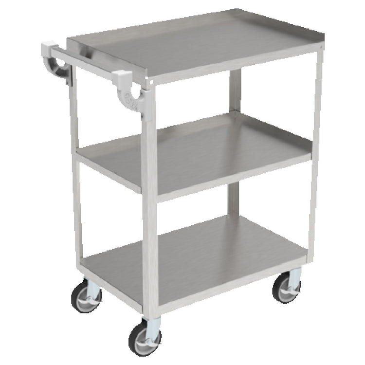 GSW USA, C-3111, Bus Cart, small, (3) shelves with 13" clearance, 27"W x 15-1/2"D x 33-1/2", shelf size approximately 24" x 15-1/2", 200 lb. load capacity, angle leg, 5" swivel casters, 18 gauge stainless steel construction, ETL