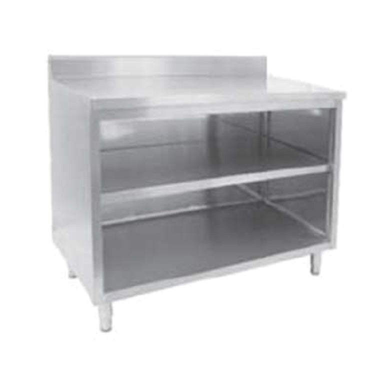 GSW USA, CTN-P2472, Work Table, cabinet base with open front, 72"W x 24"D x 35"H, 18 gauge polished stainless steel top with 4" rear up-turn, top reinforced with welded-on hat channel, sound-deadened between top channels, stainless steel construction, bullet feet, ETL