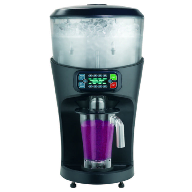 The Hamilton Beach HBS1400R Revolution Ice Shaver is a professional-grade machine crafted for efficiency and performance, making it a standout choice for commercial settings requiring high-volume ice processing. This unit features an insulated double-wall hopper, ensuring effective temperature retention to maintain ice quality. The portion system is designed for precision and consistency, supported by touchpad controls for easy operation. At its core, the Hamilton Beach HBS1400R is powered by a robust 3 HP blender motor and a 1/4 HP shaver motor, delivering powerful performance for smooth and efficient ice shaving operations. The inclusion of an HD stainless steel blade ensures durability and sharpness over extended use. The package includes a sturdy base, an ice chute, a two-piece hopper with a lid, a 64 oz. polycarbonate container, and leveling feet for stability. Operating on 120v/60/1-ph with a 15-amp circuit requirement, this ice shaver is ideal for busy commercial environments. Backed by a two-year warranty and cULus and NSF certifications, the Hamilton Beach HBS1400R also participates in the Express Care Service Program for added reliability. Its thoughtful design and powerful capabilities make it a practical asset across various sectors within the food and beverage industry.