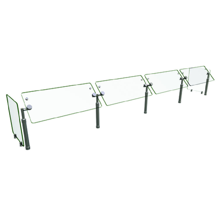 The Hatco B950-132 Flav-R-Shield® B950 Food Shield is a meticulously designed adjustable self-service unit that meets the demands of modern food service environments with its expansive 132"W x 18"D x 23"H structure. Engineered with heat-tempered glass throughout, this food shield boasts 3/4" radius corners and polished edges, ensuring both durability and safety. The front and side panels, each 3/8" thick, provide robust protection and visibility, while the 1" OD brushed 304 stainless steel posts offer sturdy support and a sleek appearance. One of its standout features is the adjustable Face Panel, which can be rotated in 15-degree increments, allowing for customizable configurations to suit various service needs. As an NSF component, it adheres to stringent health and safety standards, making it a reliable choice for establishments that prioritize compliance. Proudly made in the USA, the Hatco B950-132 Flav-R-Shield® B950 Food Shield is ideal for cafeterias, buffets, and self-service stations, where its blend of aesthetic appeal and functional precision can enhance the dining experience across diverse market segments.