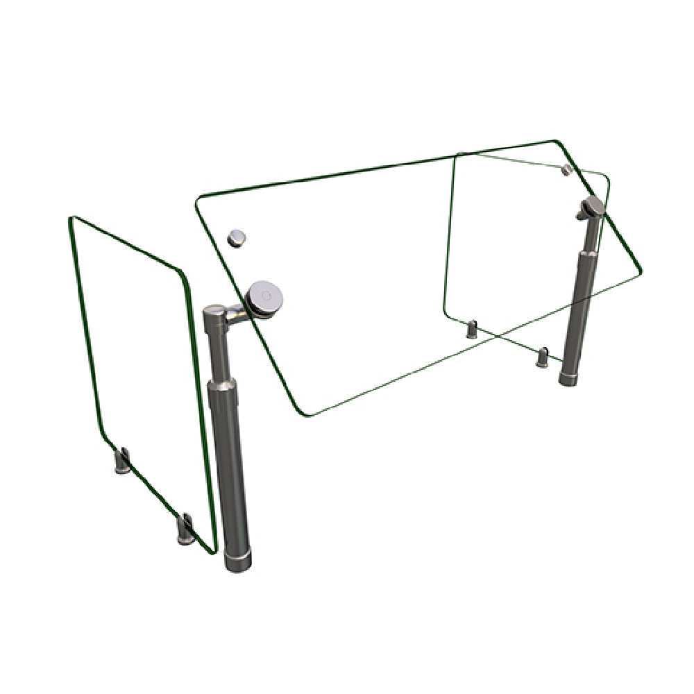 The Hatco B950SWIVEL-36 Flav-R-Shield® B950SWIVEL Food Shield is an adjustable self-service unit designed for optimal performance in culinary environments. This food shield boasts a 1 Bay structure measuring 36"W x 18"D x 23"H, crafted entirely from heat-tempered glass, enhancing its durability and safety. It features 3/4" radius corners and polished edges for a sleek finish, with 3/8" thick glass panels at the front and sides to ensure robustness and visibility. Supported by 1" OD brushed 304 stainless steel posts, this model is engineered for stability and aesthetic appeal. One of its unique features is the adjustable face panel rotation in 15-degree increments, providing flexible configuration options. Furthermore, the bracket heads on the face can swivel from 90 degrees up to 270 degrees, accommodating turns when used with multiple bays. This design is NSF component certified, ensuring it meets health and safety standards, and is proudly manufactured in the USA. The Hatco B950SWIVEL-36 is ideal for various market segments within the food service industry, providing both functionality and style in self-service environments.