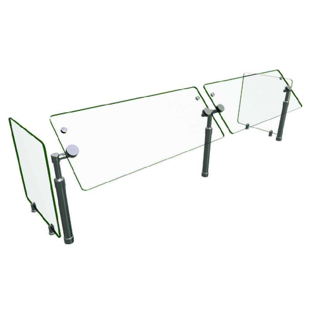 The Hatco B950SWIVEL-72 Flav-R-Shield® B950SWIVEL Food Shield is a versatile and adjustable self-service fixture designed for optimal food presentation and safety across diverse culinary settings. This unit features a robust construction with heat-tempered glass throughout, ensuring durability and clarity, while the 3/4" radius corners and polished edges add an element of sophistication. The glass front and side panels are 3/8" thick, providing a sturdy barrier against external contaminants. Supported by 1" OD brushed 304 stainless steel posts, the food shield ensures stability and resistance to corrosion. A key feature is its adjustable face panel rotation in 15-degree increments, allowing for precise positioning to suit varying service needs. The bracket heads on the face can swivel between 90 degrees and 270 degrees, facilitating seamless integration when utilizing multiple bays. With dimensions of 72"W x 18"D x 23"H, this model includes two bays, making it suitable for medium to large self-service arrangements. As an NSF component, it meets rigorous health and safety standards, reinforcing its reliability in professional food service environments. Proudly made in the USA, the Hatco B950SWIVEL-72 is ideal for those seeking a high-performance, adjustable food shield solution.