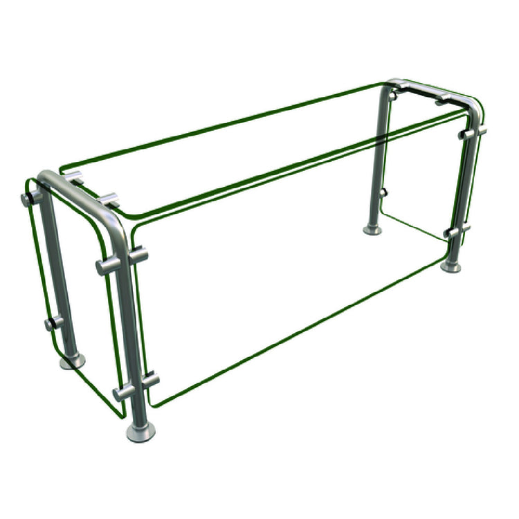 The Hatco ED20-03612 Flav-R-Shield® ED20 Food Shield is a full-service food protection solution, measuring 36 inches in width, 12 inches in depth, and 18 inches in height. This product is constructed entirely from heat-tempered glass, ensuring durability and clarity, with 3/4-inch radius corners and polished edges for a sleek finish. The glass top shelf, front panel, and side panels are robust, with a thickness of 3/8 inches, providing reliable support and a clear view of the merchandise. The structure is supported by 1-inch OD brushed 304 stainless steel posts, known for their strength and resistance to corrosion. This food shield is NSF component certified, highlighting its compliance with high standards for health and safety within the food service industry. Proudly made in the USA, the Hatco ED20-03612 is ideal for various segments within the industry, from buffets and cafeterias to catering services, providing not only protection but also an aesthetic display solution. Its technical design addresses both usability and safety, making it an essential component for establishments prioritizing hygiene and efficient service.