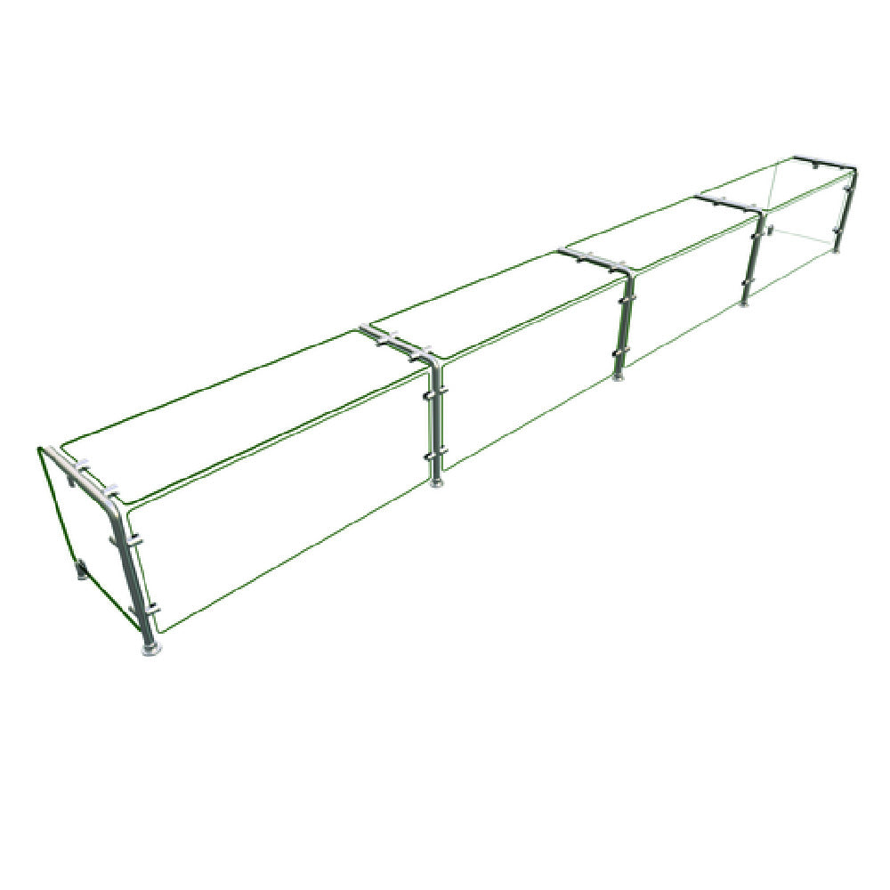 The Hatco EP11-14415 Flav-R-Shield® EP11 Food Shield is a full-service solution designed with meticulous attention to detail, featuring a substantial width of 144 inches, a depth of 15 inches, and a height of 18 inches. Constructed with 1/4-inch thick heat tempered glass, this food shield ensures durability and safety, with its 3/4-inch radius corners and polished edges enhancing both functionality and aesthetics. The glass top shelf, along with front and side panels, provide comprehensive coverage and visibility for food displays, making it an essential component for any service area. Supported by 1-inch OD brushed 304 stainless steel posts, this structure offers a sturdy framework that is both attractive and resilient. Certified as an NSF component, the Hatco EP11-14415 underscores its commitment to health and safety standards, making it suitable for professional kitchens and food service establishments. Proudly made in the USA, this food shield is engineered for performance and reliability, catering to diverse segment markets within the food industry that demand high-quality display and service solutions. The combination of robust materials and thoughtful design makes it a paramount choice for establishments wishing to present their food offerings with elegance and integrity.