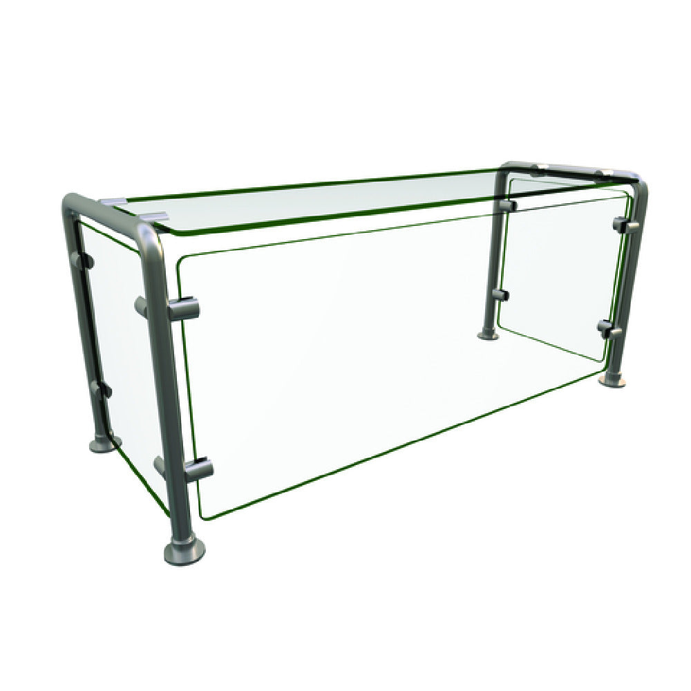 The Hatco EP12-03615 Flav-R-Shield® EP12 Food Shield is a full service pass-over unit designed for enhanced food safety and presentation. This model features a single bay with dimensions of 36 inches in width, 15 inches in depth, and 18 inches in height, making it an ideal choice for food service establishments that require a compact yet effective food protection solution. The construction is dominated by 1/4-inch thick heat-tempered glass throughout, providing durability and resistance to thermal stress. The design includes 3/4-inch radius corners and polished edges, contributing to a sleek and professional appearance. The structure is supported by 1-inch OD brushed 304 stainless steel posts, renowned for their strength and corrosion resistance. The inclusion of a glass top shelf, along with front and side panels with a back post, ensures comprehensive coverage and versatility in use. As an NSF component, the Hatco EP12-03615 complies with rigorous public health and safety standards, underscoring its suitability for professional foodservice environments. Proudly made in the USA, this food shield exemplifies quality craftsmanship and dependable utility, making it a valuable asset for restaurants, cafeterias, and catering services seeking to maintain high standards of food presentation and hygiene.