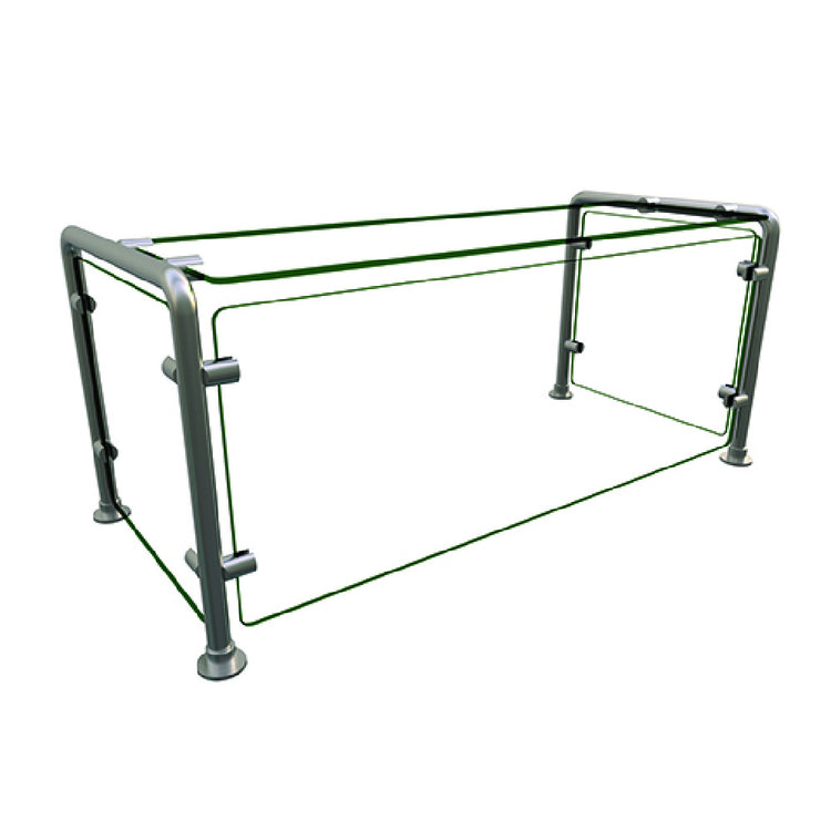 The Hatco EP12-03618 Flav-R-Shield® EP12 Food Shield is a meticulously designed full-service pass-over unit, measuring 36"W x 18"D x 18"H, and is crafted to meet the diverse needs of the food service industry. This unit features 1/4" thick heat-tempered glass construction throughout, ensuring durability and safety, with 3/4" radius corners and polished edges for an elegant finish. The inclusion of a glass top shelf, along with front and side panels supported by robust back posts, highlights its practical design. The food shield's structure is further reinforced with 1" OD brushed 304 stainless steel posts, which provide both strength and a sleek aesthetic. As an NSF component, this product meets rigorous standards for public health protection, emphasizing its reliability and quality in professional settings. Proudly made in the USA, the Hatco EP12-03618 Flav-R-Shield® EP12 Food Shield caters to various market segments, including restaurants, buffets, and catering services, where full-service food presentation and protection are paramount. This food shield is an excellent choice for those seeking a combination of functionality, safety, and style in their food service equipment.