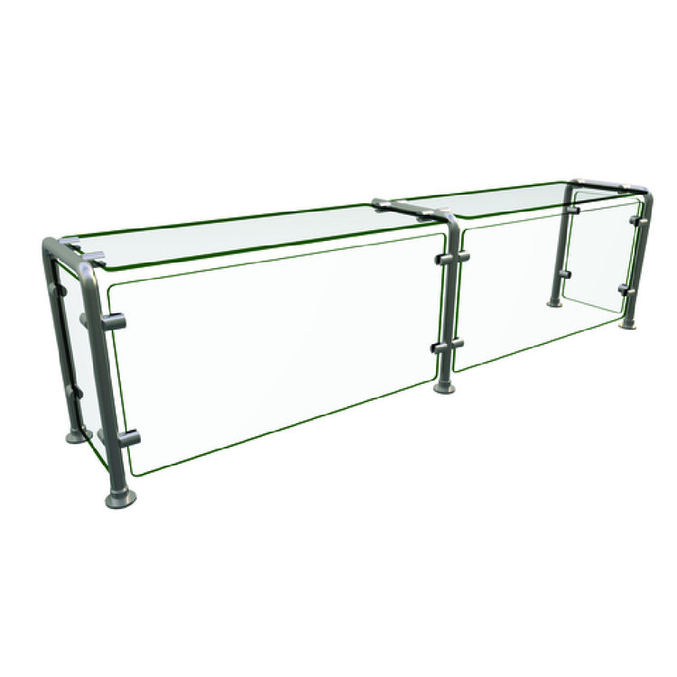 The Hatco EP12-06012 Flav-R-Shield® EP12 Food Shield is a meticulously engineered full service pass-over unit, designed to serve various market segments within the food service industry. Its construction includes a significant 1/4" thick heat-tempered glass throughout, ensuring durability and safety. The food shield features two bays, each measuring 60 inches in width, 12 inches in depth, and 18 inches in height. These dimensions are optimized for efficient service and product display. The design incorporates 3/4" radius corners and polished edges, adding a sleek and professional aesthetic to your service area. The glass top shelf, along with front and side panels supported by a back post, enhances visibility and accessibility, while maintaining the integrity of the displayed items. The 1" OD brushed 304 stainless steel posts provide robust support and a modern appearance, ensuring longevity and corrosion resistance. As an NSF-certified component, this food shield meets stringent standards for public health and safety, making it a trusted choice for professional environments. Proudly made in the USA, the Hatco EP12-06012 stands as a reliable and high-quality solution for establishments seeking both functionality and elegant design in their food service operations.